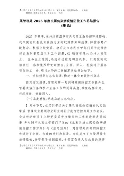 【七哥公文】2025年:某管理处2025年度虫媒传染病疫情防控工作总结报告(精品)+更多免费公文+VX:QiGeGongWen2024