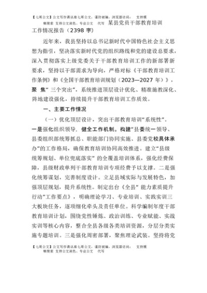 / 【七哥公文】2025年:某县党员干部教育培训工作情况报告(2398字)+更多免费公文+VX:QiGeGongWen2024