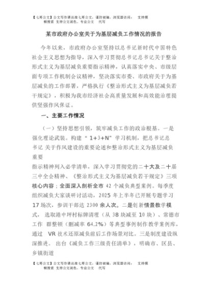 / 【七哥公文】2025年:某市政府办公室关于为基层减负工作情况的报告+更多免费公文+VX:QiGeGongWen2024