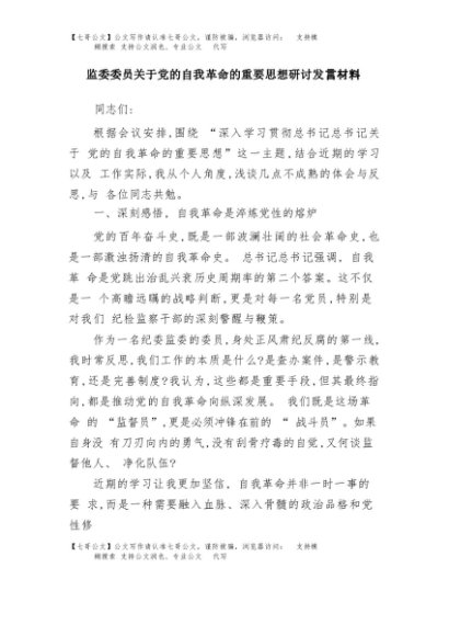 / 【七哥公文】2025年:监委委员关于党的自我革命的重要思想研讨发言材料+更多免费公文+VX:QiGeGongWen2024