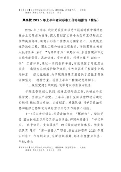 【七哥公文】2025年:某高校2025年上半年意识形态工作总结报告(精品)+更多免费公文+VX:QiGeGongWen2024