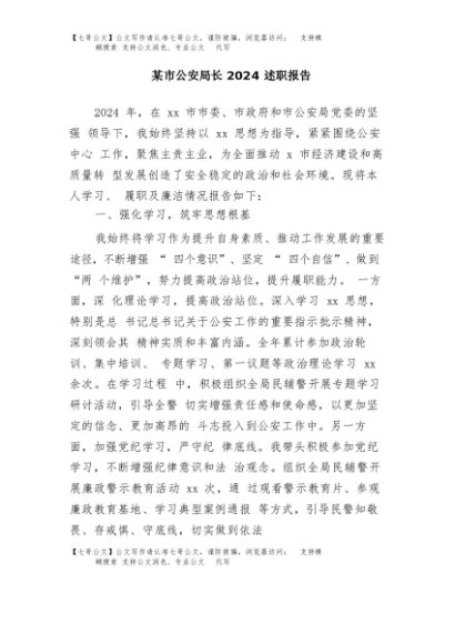 / 【七哥公文】2025年:某市公安局长2024述职报告+更多免费公文+VX:QiGeGongWen2024