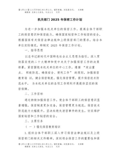 / 【七哥公文】2025年:机关部门2025年保密工作计划+更多免费公文+VX:QiGeGongWen2024