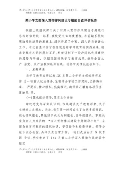 / 【七哥公文】2025年:某小学支部深入贯彻作风建设专题的自查评估报告+更多免费公文+VX:QiGeGongWen2024
