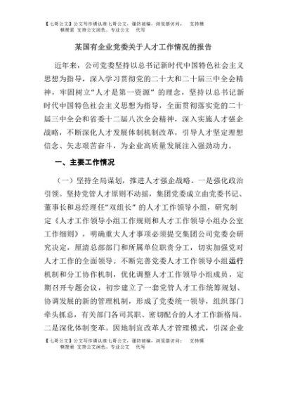 / 【七哥公文】2025年:某国有企业党委关于人才工作情况的报告+更多免费公文+VX:QiGeGongWen2024