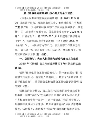 / 【七哥公文】2025年:新《监察法实施条例》核心要点与条文速览+更多免费公文+VX:QiGeGongWen2024