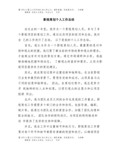 / 【七哥公文】2025年:影视策划个人工作总结+更多免费公文+VX:QiGeGongWen2024