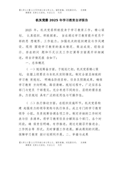 / 【七哥公文】2025年:机关党委2025年学习教育自评报告+更多免费公文+VX:QiGeGongWen2024