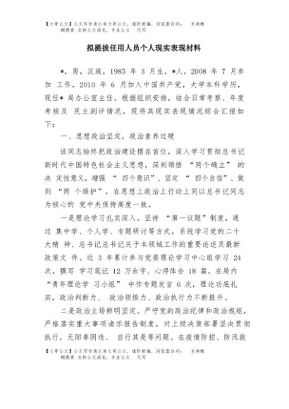 【七哥公文】2025年:拟提拔任用人员个人现实表现材料+更多免费公文+VX:QiGeGongWen2024