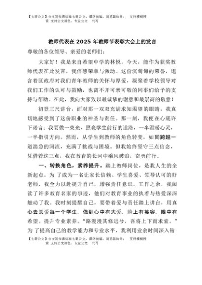 / 【七哥公文】2025年:教师代表在2025年教师节表彰大会上的发言+更多免费公文+VX:QiGeGongWen2024