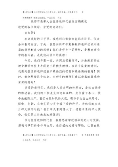 / 【七哥公文】2025年:教师节表彰大会优秀教师代表发言稿模板+更多免费公文+VX:QiGeGongWen2024