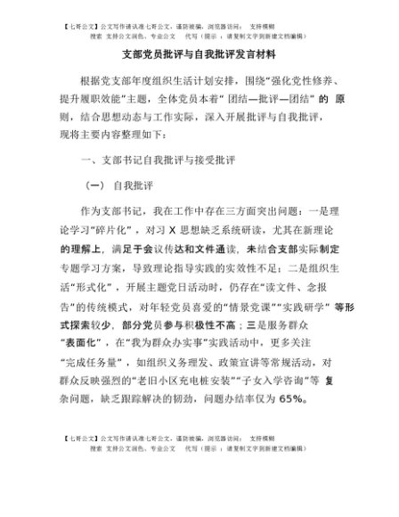 / 【七哥公文】2025年:支部党员批评与自我批评发言材料+更多免费公文+VX:QiGeGongWen2024
