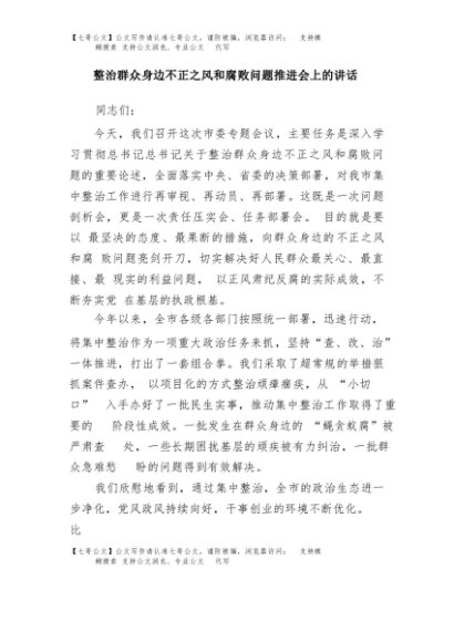 / 【七哥公文】2025年:整治群众身边不正之风和腐败问题推进会上的讲话+更多免费公文+VX:QiGeGongWen2024