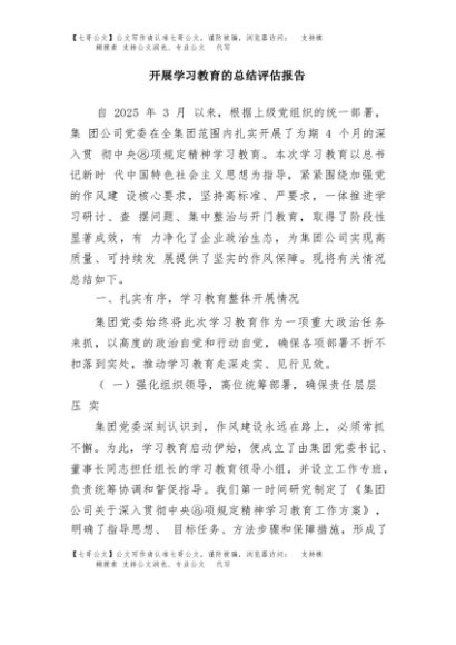 / 【七哥公文】2025年:开展学习教育的总结评估报告+更多免费公文+VX:QiGeGongWen2024