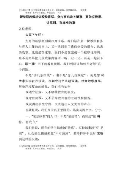 【七哥公文】2025年:新学期教师培训校长讲话:分内事也是关键事,要做有依据、讲原则、有标准的事+更多免费公文+VX:QiGeGongWen2024