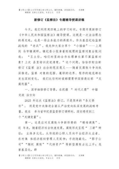 / 【七哥公文】2025年:新修订《监察法》专题辅导授课讲稿+更多免费公文+VX:QiGeGongWen2024