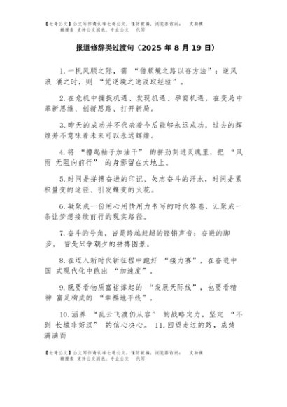 【七哥公文】2025年:报道修辞类过渡句(2025年9月)+更多免费公文+VX:QiGeGongWen2024
