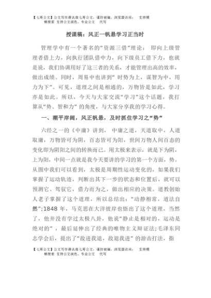 【七哥公文】2025年:授课稿:风正一帆悬 学习正当时+更多免费公文+VX:QiGeGongWen2024