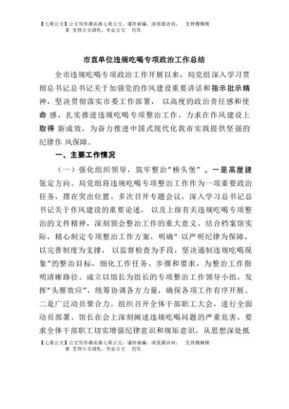 / 【七哥公文】2025年:市直单位违规吃喝专项政治工作总结+更多免费公文+VX:QiGeGongWen2024