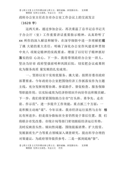【七哥公文】2025年:政府办公室主任在全市办公室工作会议上的交流发言(1628字)+更多免费公文+VX:QiGeGongWen2024