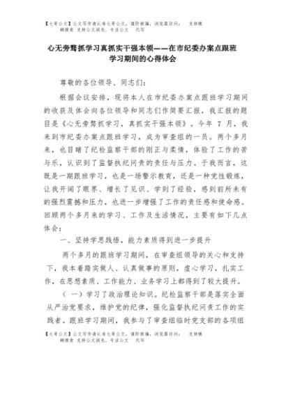 【七哥公文】2025年:心无旁骛抓学习 真抓实干强本领——在市纪委办案点跟班学习期间的心得体会+更多免费公文+VX:QiGeGongWen2024