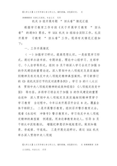 / 【七哥公文】2025年:机关党组开展专题回头看情况汇报+更多免费公文+VX:QiGeGongWen2024