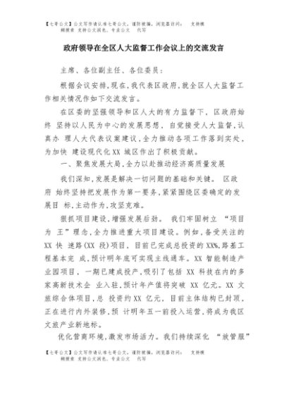 / 【七哥公文】2025年:政府领导在全区人大监督工作会议上的交流发言+更多免费公文+VX:QiGeGongWen2024
