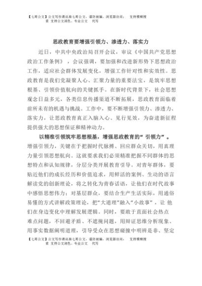 【七哥公文】2025年:思政教育要增强引领力、渗透力、落实力+更多免费公文+VX:QiGeGongWen2024