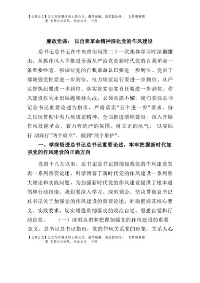 / 【七哥公文】2025年:廉政党课:以自我革命精神深化党的作风建设+更多免费公文+VX:QiGeGongWen2024