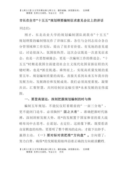 【七哥公文】2025年:市长在全市“十五五”规划纲要编制征求意见会议上的讲话+更多免费公文+VX:QiGeGongWen2024