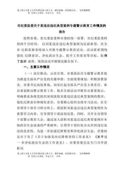 【七哥公文】2025年:市纪委监委关于某违法违纪典型案例专题警示教育工作情况的报告+更多免费公文+VX:QiGeGongWen2024