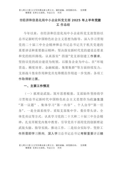 【七哥公文】2025年:市经济和信息化局中小企业科党支部2025年上半年党建工作总结+更多免费公文+VX:QiGeGongWen2024