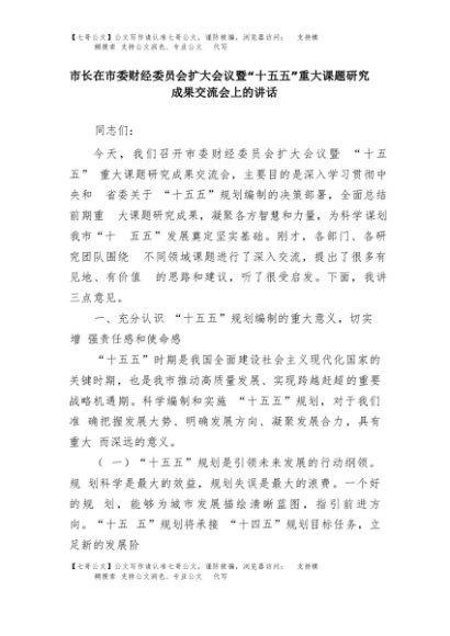 【七哥公文】2025年:市长在市委财经委员会扩大会议暨“十五五”重大课题研究成果交流会上的讲话+更多免费公文+VX:QiGeGongWen2024