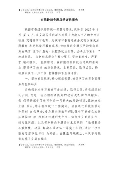 / 【七哥公文】2025年:市统计局专题总结评估报告+更多免费公文+VX:QiGeGongWen2024