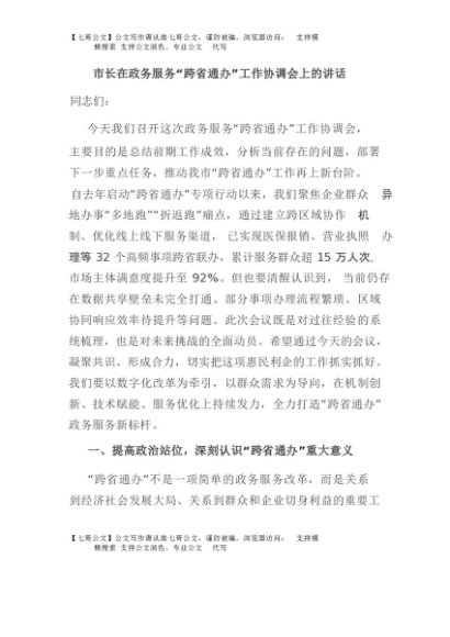 / 【七哥公文】2025年:市长在政务服务“跨省通办”工作协调会上的讲话+更多免费公文+VX:QiGeGongWen2024