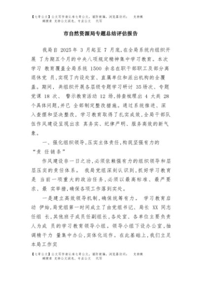 / 【七哥公文】2025年:市自然资源局专题总结评估报告+更多免费公文+VX:QiGeGongWen2024