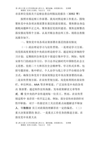 【七哥公文】2025年:市直单位党组关于巡察自查自纠情况的报告(3092字)+更多免费公文+VX:QiGeGongWen2024
