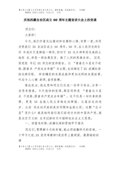 / 【七哥公文】2025年:庆祝西藏自治区成立60周年主题宣讲大会上的党课+更多免费公文+VX:QiGeGongWen2024