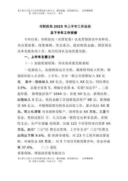【七哥公文】2025年:市财政局2025年上半年工作总结及下半年工作安排+更多免费公文+VX:QiGeGongWen2024