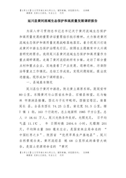 / 【七哥公文】2025年:延川县黄河流域生态保护和高质量发展调研报告+更多免费公文+VX:QiGeGongWen2024