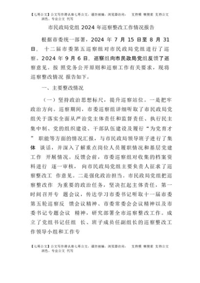 / 【七哥公文】2025年:市民政局党组巡察整改工作情况报告+更多免费公文+VX:QiGeGongWen2024