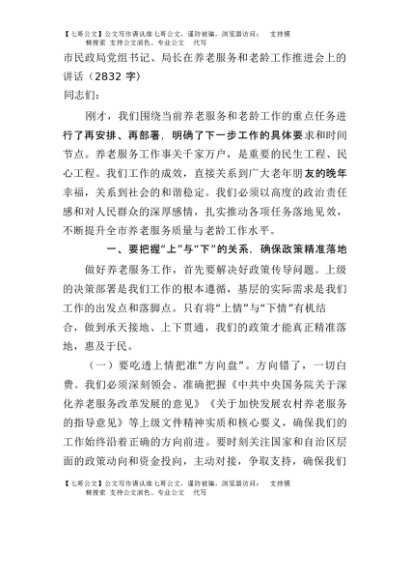 【七哥公文】2025年:市民政局党组书记、局长在养老服务和老龄工作推进会上的讲话(2832字)+更多免费公文+VX:QiGeGongWen2024