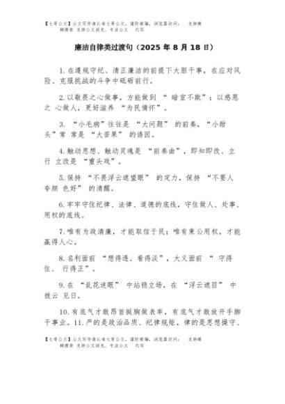 / 【七哥公文】2025年:廉洁自律类过渡句(2025年9月)+更多免费公文+VX:QiGeGongWen2024