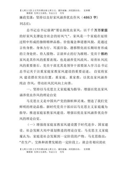 【七哥公文】2025年:廉政党课:坚持以良好家风涵养优良作风(4863字)+更多免费公文+VX:QiGeGongWen2024
