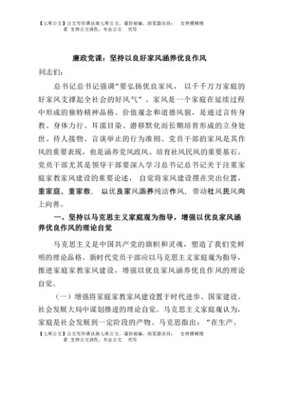 / 【七哥公文】2025年:廉政党课:坚持以良好家风涵养优良作风+更多免费公文+VX:QiGeGongWen2024