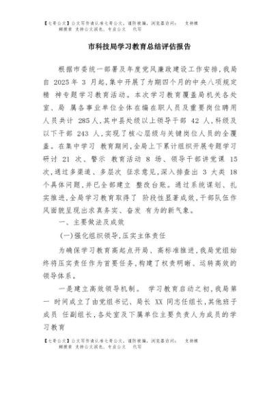 / 【七哥公文】2025年:市科技局学习教育总结评估报告+更多免费公文+VX:QiGeGongWen2024