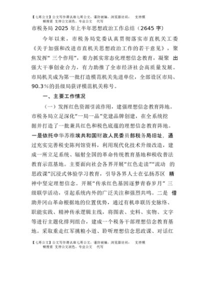 【七哥公文】2025年:市税务局2025年上半年思想政治工作总结(2645字)+更多免费公文+VX:QiGeGongWen2024