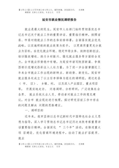/ 【七哥公文】2025年:延安市就业情况调研报告+更多免费公文+VX:QiGeGongWen2024