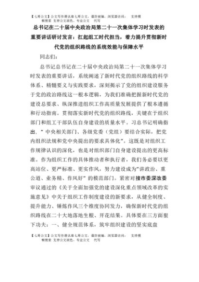 【七哥公文】2025年:总书记在二十届中央政治局第二十一次集体学习时发表的重要讲话研讨发言:扛起组工时代担当,着力提升贯彻新时代党的组织路线的系统效能与保障水平+更多免费公文+VX:QiGeGongWen2024