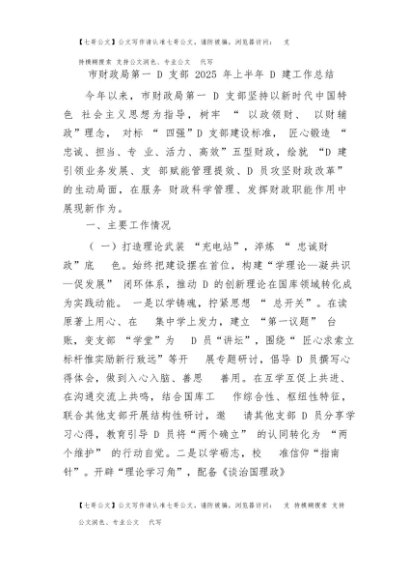 / 【七哥公文】2025年:市财政局第一党支部2025年上半年党建工作总结+更多免费公文+VX:QiGeGongWen2024